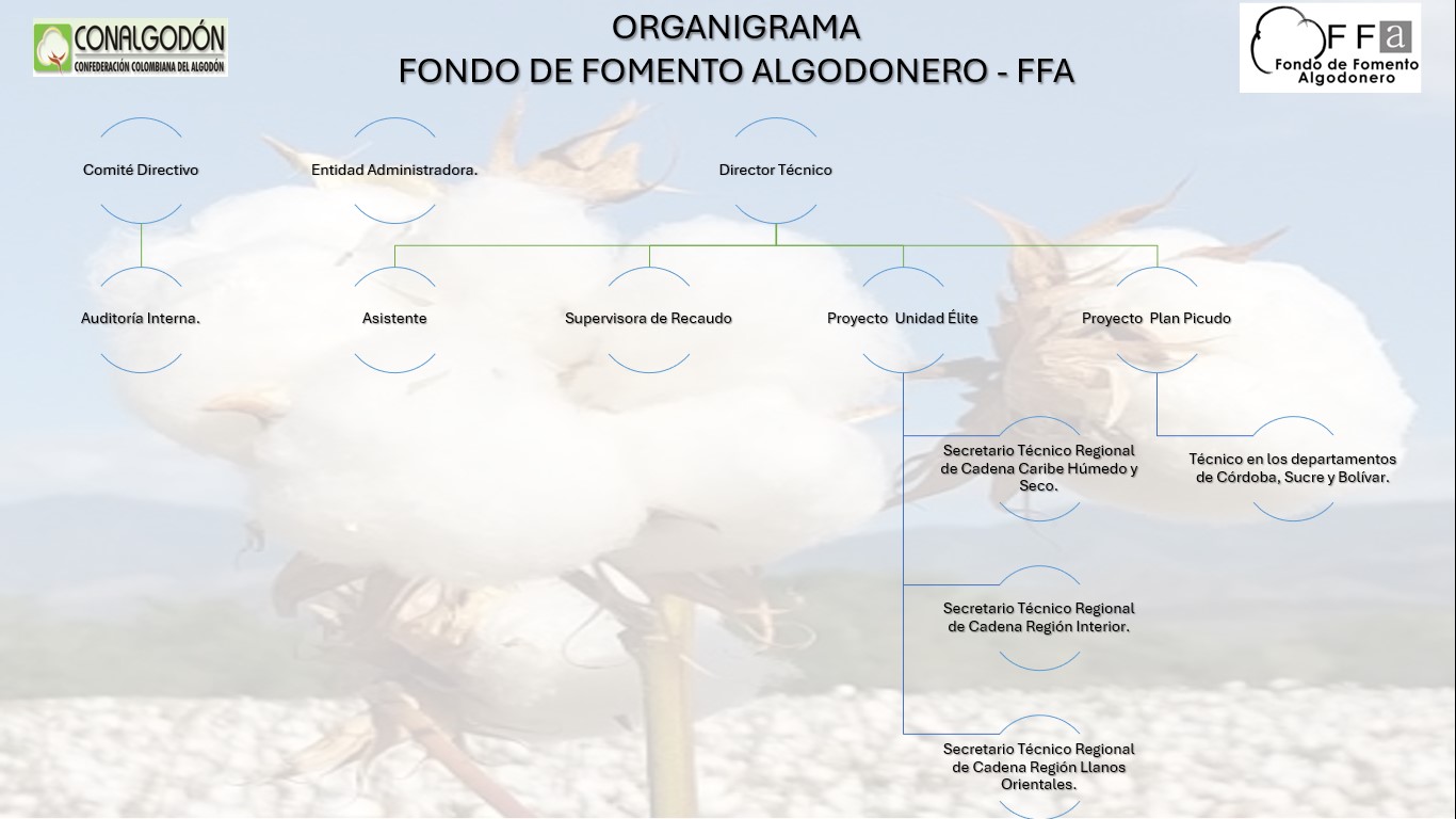 El Fondo de Fomento Algodonero se creó mediante la Ley 219 de 1995 para el manejo de los recursos provenientes del recaudo de la cuota de fomento algodonero y del patrimonio formado por éstos. Estos recursos son administrados por la Confederación Colombiana del Algodón, CONALGODON, como entidad gremial cúpula representativa del sector algodonero nacional, mediante contrato suscrito con el Ministerio de Agricultura y Desarrollo Rural, el cual se renueva cada diez años.